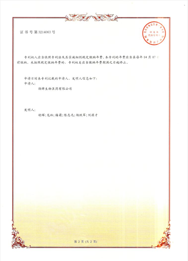1月11日,由胡輝、龍林、梅菊、陳志元、楊躍軍、劉源才6人提出的《一種具有輔助降血糖功效的低分子量青稞β-葡聚糖的制備方法》獲得發(fā)明專利。該專利為勁牌公司2019年自然年度獲批的第一項(xiàng)發(fā)明專利。