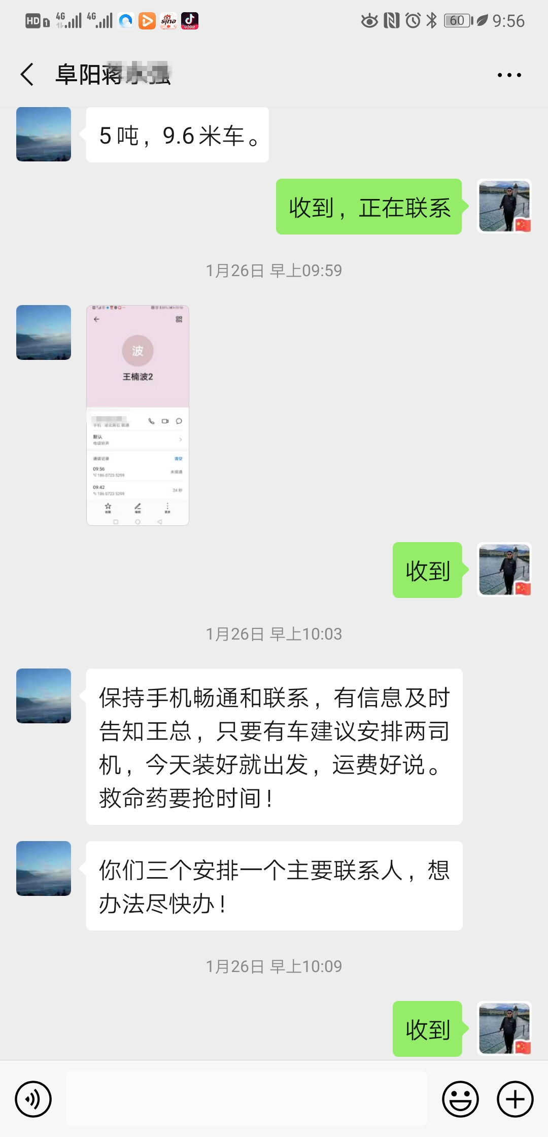我接單后,與小舅子劉慶偉對交通和疫情形勢做了一番判斷。畢竟是在過年時期,我平時在外跑車,聚少離多,家里圖的是一個團圓,這個時候還去接單送貨,還是進入千里之外的疫區,對家人來說,是件大事,要跟家人商量。我剛給家人一說,招來一致反對,堅決不讓去。母親說,一家人要一起過個年,平時我很少在家,讓我不要去。愛人也始終不同意我去,擔心被感染。