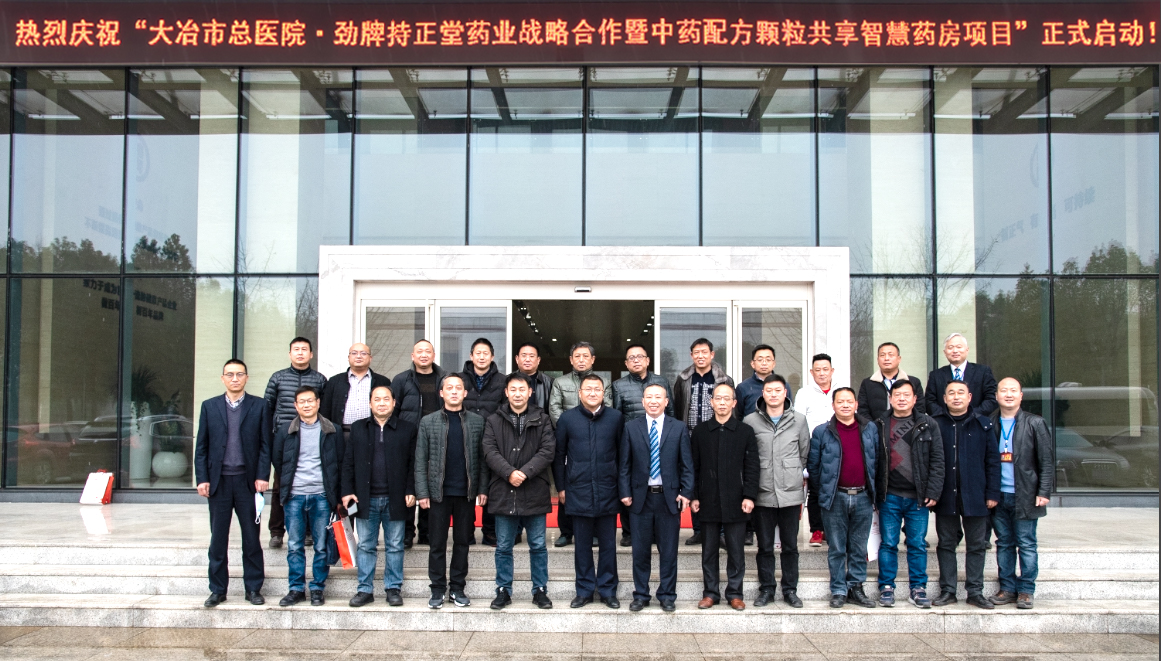 啟動儀式上,市委書記王剛發(fā)表重要講話,他首先明確了中藥配方顆粒作為一種新型中藥劑型,具有藥效穩(wěn)定、無需煎煮、方便快捷等優(yōu)點(diǎn),同時(shí)肯定了疫情期間,勁牌持正堂作為本土企業(yè),捐贈疫情用中藥配方顆粒,造福家鄉(xiāng)人民。他還表示勁牌持正堂藥業(yè)要與大冶市總醫(yī)院和14家鄉(xiāng)鎮(zhèn)衛(wèi)生院、社區(qū)衛(wèi)生服務(wù)中心進(jìn)行深度合作,全面推廣共享智慧藥房。市委常委、常務(wù)副市長肖緒華和勁牌持正堂藥業(yè)總經(jīng)理李清安先后進(jìn)行致辭,均表示疫情期間,勁牌持正堂中藥配方顆粒對我市防治新冠肺炎發(fā)揮了重要作用;后疫情時(shí)代,將繼續(xù)創(chuàng)新實(shí)踐“中醫(yī)藥+互聯(lián)網(wǎng)”模式,滿足人民群眾日益增長的中醫(yī)藥服務(wù)需求。 隨后,市總醫(yī)院書記、院長許清和勁牌持正堂藥業(yè)總經(jīng)理李清安簽署了“大冶市總醫(yī)院與勁牌持正堂藥業(yè)戰(zhàn)略合作協(xié)議”。市委書記王剛、勁牌有限公司董事長、總裁吳少勛等共同為中藥配方顆粒共享智慧藥房項(xiàng)目按鍵啟動,并現(xiàn)場連線金湖衛(wèi)生院,見證了醫(yī)生開方、上傳處方、勁牌持正堂智慧藥房接收并調(diào)劑處方的全過程。 最后,與會人員在持正堂藥業(yè)展開了座談會。與會人員就如何落實(shí)中藥配方顆粒共享智慧藥房模式予以了探討。市總醫(yī)院書記、院長許清、勁牌持正堂藥業(yè)總經(jīng)理李清安現(xiàn)場做出解答,并對下步工作進(jìn)行了具體落實(shí)。李清安表示勁牌持正堂將全力以赴配合大冶市總醫(yī)院及各鄉(xiāng)鎮(zhèn)衛(wèi)生院、社區(qū)衛(wèi)生服務(wù)中心,進(jìn)一步整合資源加大中醫(yī)藥推廣,做大、做強(qiáng)中藥配方顆粒共享智慧藥房模式。 此次戰(zhàn)略合作是后疫情時(shí)代,勁牌持正堂藥業(yè)發(fā)展歷程中具有里程碑意義的一個(gè)重要事件!通過此次戰(zhàn)略合作,勁牌持正堂也將進(jìn)一步深入探索“中醫(yī)藥+互聯(lián)網(wǎng)”的新模式,不斷提高中醫(yī)藥覆蓋人群,讓中醫(yī)藥這一中華傳統(tǒng)瑰寶在新時(shí)代煥發(fā)新光彩,為健康中國作出更大貢獻(xiàn)!