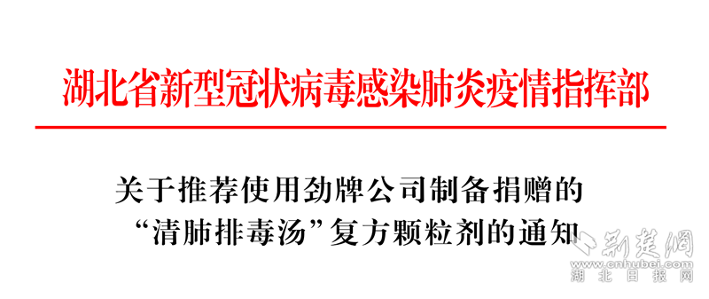 湖北全省推薦使用勁牌捐贈“清肺排毒湯”