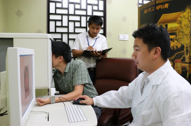 9月2日,勁牌健康管理中心數(shù)字化診療室里,健康管理顧問(wèn)閔楠帶著會(huì)員陳總前來(lái)接受體質(zhì)檢測(cè),資深中醫(yī)博士殷濤依次對(duì)其進(jìn)行面診、脈診、舌診……閔楠?jiǎng)t在一旁認(rèn)真記錄殷博士強(qiáng)調(diào)陳總的日常飲食注意事項(xiàng)。